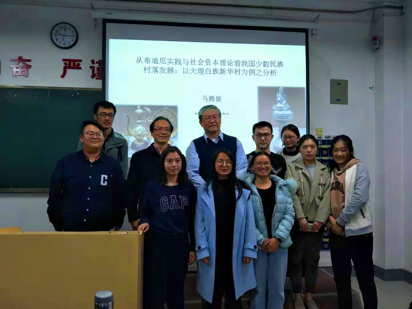 11月6日晚七点,云南大学特聘教授马腾嶽应邀做客我校“侯外庐学术讲座”,于长安校区1106教室为我校师生带来了题为“从布迪厄实践与社会资本理论看当代我国少数民族村落发展:以大理白族新华村为例之分析”的主题讲座。本次讲座由我院院长张学广教授主持。